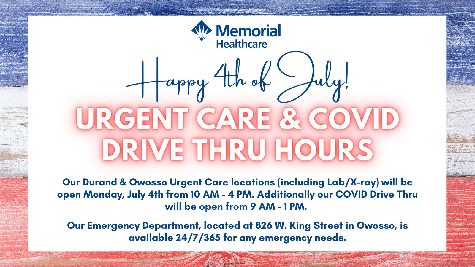Memorial Urgent Care State Road. 10 am 8 pm. The Memorial Urgent Care is located in Owosso MI.